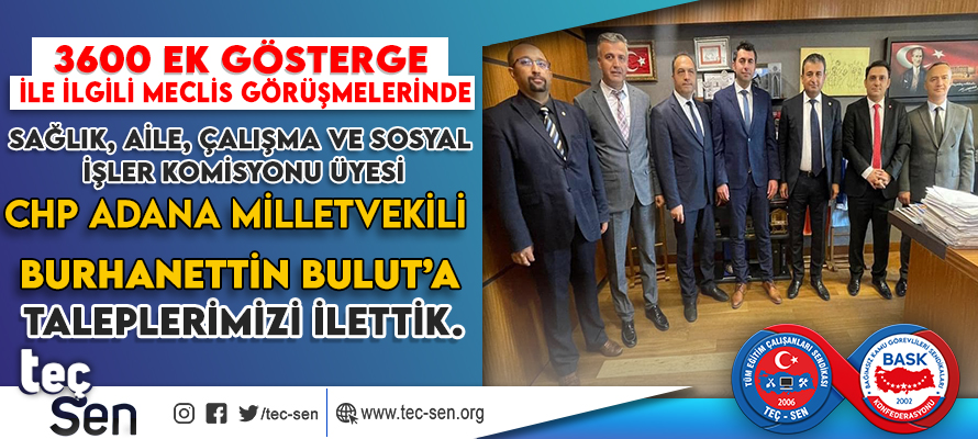 3600 EK GÖSTERGE İLE İLGİLİ MECLİS GÖRÜŞMELERİNDE SAĞLIK,AİLE,ÇALIŞMA VE SOSYAL İŞLER KOMİSYON ÜYESİ CHP ADANA MİLLETVEKİLİ BURHANETTİN BULUT'A TALEPLERİMİZİ İLETTİK.