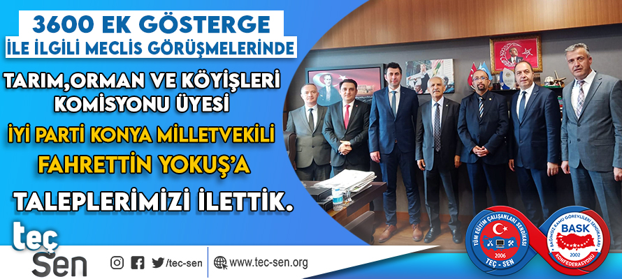 Tarım, Orman ve Köyişleri Komisyonu Üyesi ve Aynı Zamanda İYİ Parti Konya Milletvekili Fahrettin YOKUŞ’U Ziyaret Ederek Kamu Çalışanlarının Sorunları ve Çözüm Önerilerimize Dair Taleplerimizi İlettik.